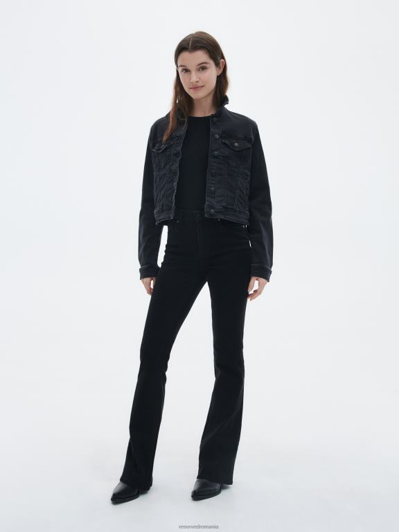 negru Reserved femei îmbrăcăminte blugi evazați cu talie înaltă 648HZ807