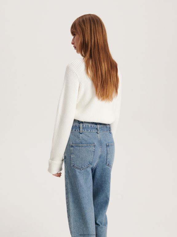 albastru Reserved femei îmbrăcăminte blugi paperbag 648HZ753