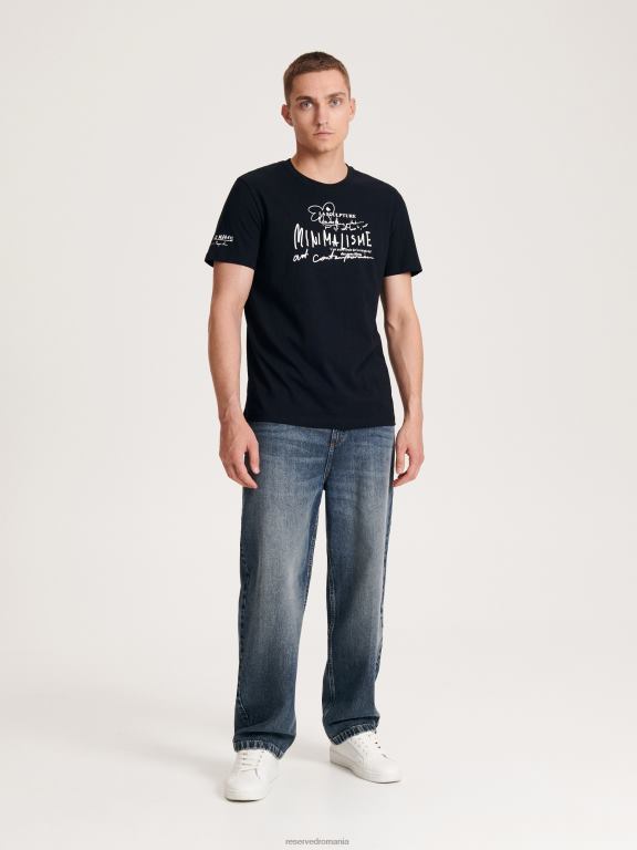 negru Reserved bărbați îmbrăcăminte tricou confortabil cu imprimeu regulat 648HZ1200